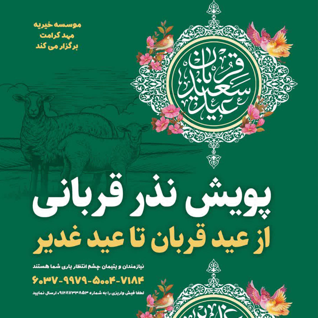 پویش نذر قربانی از عید قربان تا عید غدیر با هدف جمعآوری نذورات مردمی و توزیع آن بین اقشار نیازمند در موسسه خیریه مهد کرامت اجرا میشود. مردم نوعدوست استان میتوانند با واریز کمکهای نقدی و غیر نقدی(گوسفند و یا گوشت) در قالب نذر قربانی، از امکان ادای نذر خود بهصورت مشارکتی با سایر خیرین بهرهمند شوند. خیرین محترم میتوانند با هر میزان از توانایی در این پویش مشارکت کرده و سهمی در اجرای این پویش و خدمترسانی به خانوادههای نیازمند داشته باشند. نذورات خیران نیکاندیش بین خانواده های نیازمند با اولویت فرزندان ایتام، بیماران، سالمندان و زنان سرپرست خانوار توزیع میشود.